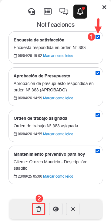 1 Realiza clic en la casilla de verificación (checkbox) de la notificación que deseas eliminar.