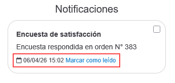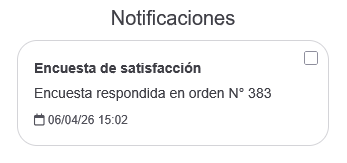 - Encuesta de valoración: Notificación sobre la respuesta del cliente.