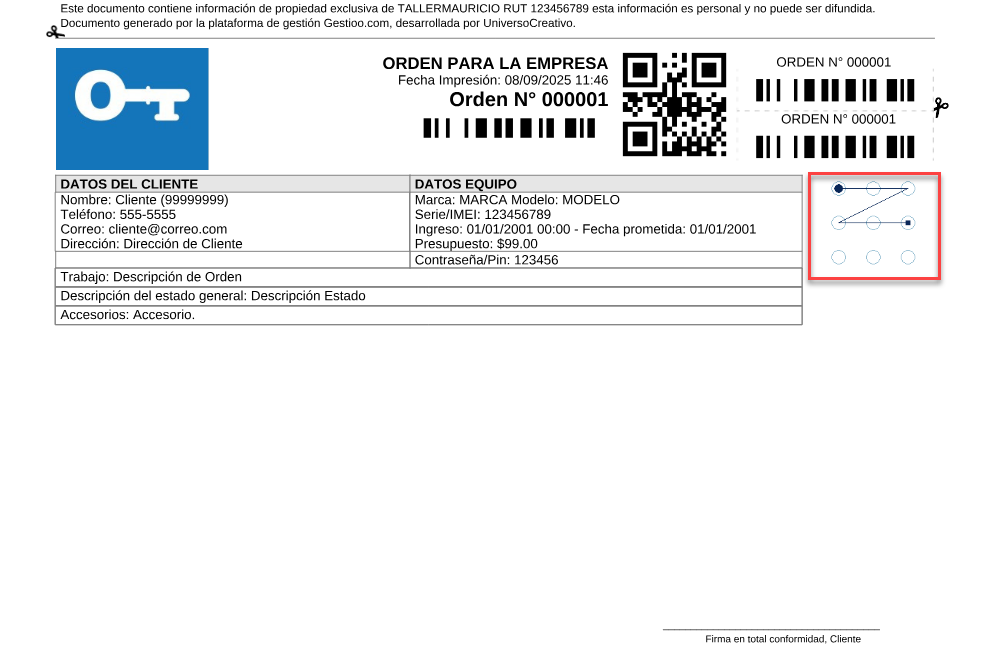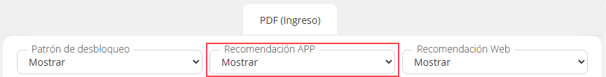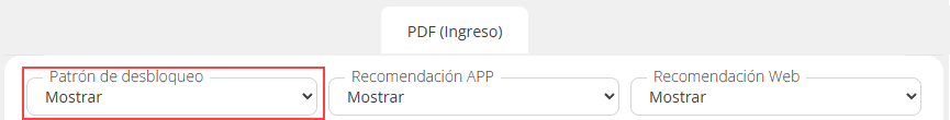 Define si el campo de patrón de desbloqueo se debe mostrar o no mostrar en el PDF de ingreso.