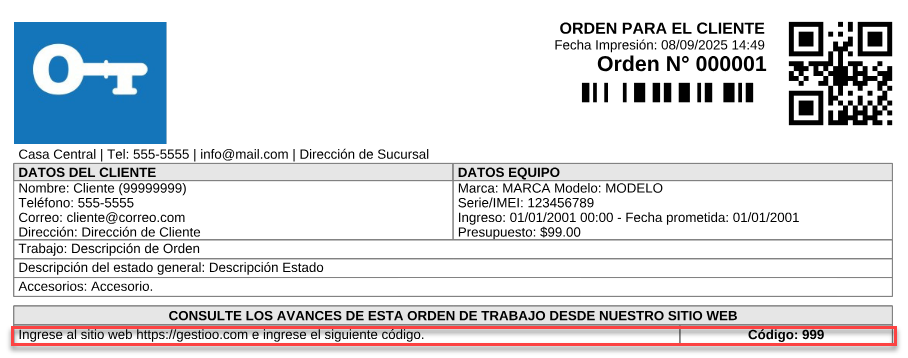 Se recomienda no ocultar este campo, ya que el código de la orden es utilizado para el seguimiento de la orden de trabajo en la aplicación, en el widget para el sitio web y en la web de seguimiento para clientes.