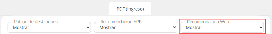 Configura si las recomendaciones deben mostrarse en la orden PDF.