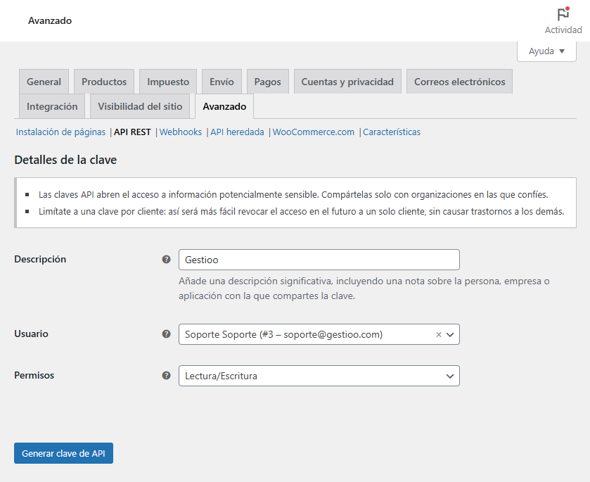 En esta guía, te proporcionaremos instrucciones detalladas para realizar la integración entre tu tienda online desarrollada en WooCommerce y el sistema Gestioo®. Esta vinculación permite sincronizar automáticamente productos y stock, optimizando la gestión comercial de tu empresa.