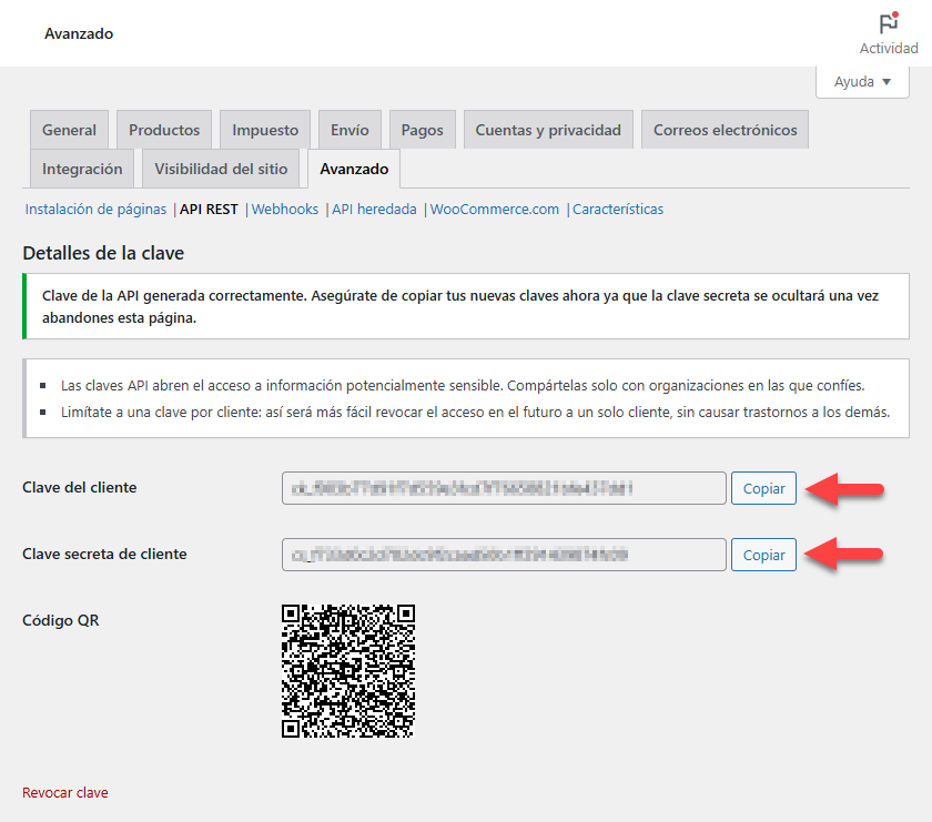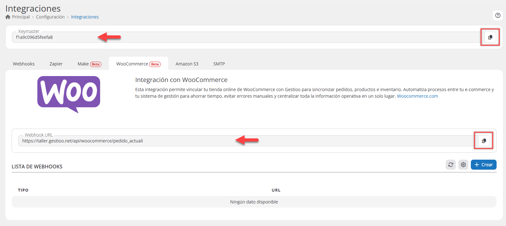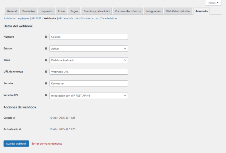 - Pega estos valores en los campos correspondientes del Webhook de WooCommerce.