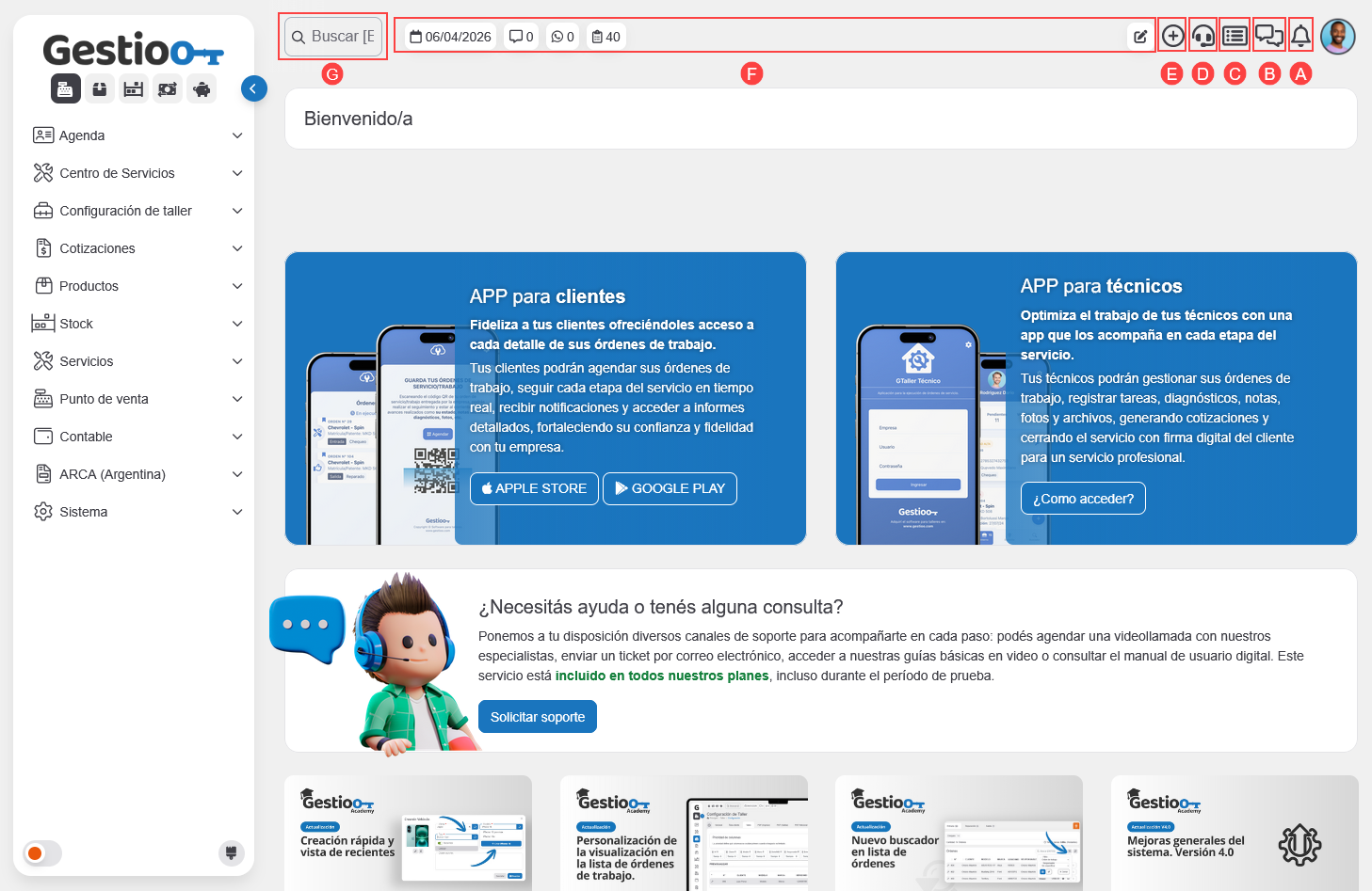 Bienvenido al manual de usuario de la interfaz de Gestioo®, diseñado para facilitar la navegación y optimizar el uso del software de gestión en talleres. Este documento detalla las características clave de la interfaz, desarrollada con un enfoque moderno y minimalista, asegurando una experiencia de usuario intuitiva y eficiente.