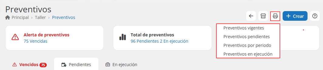 Allí encontrarás los preventivos registrados en tu taller.