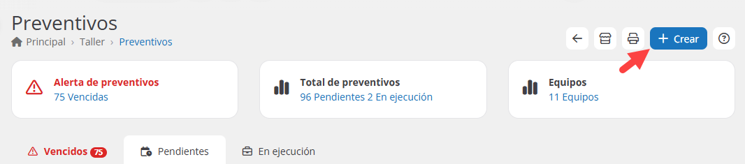Realiza clic en “Crear” para abrir el formulario de nuevo preventivo.