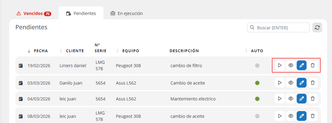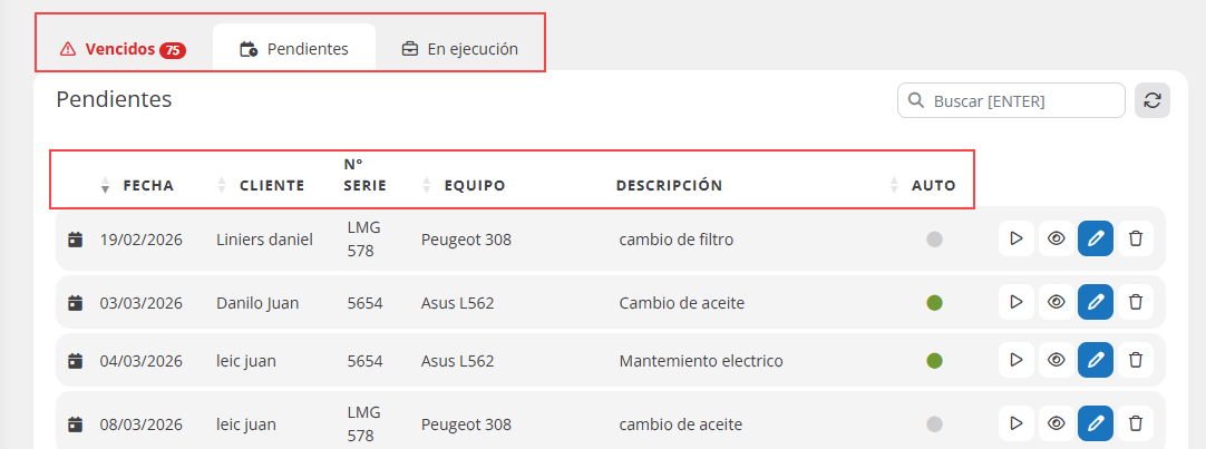- Preventivos pendientes.