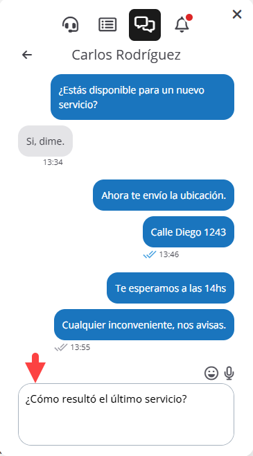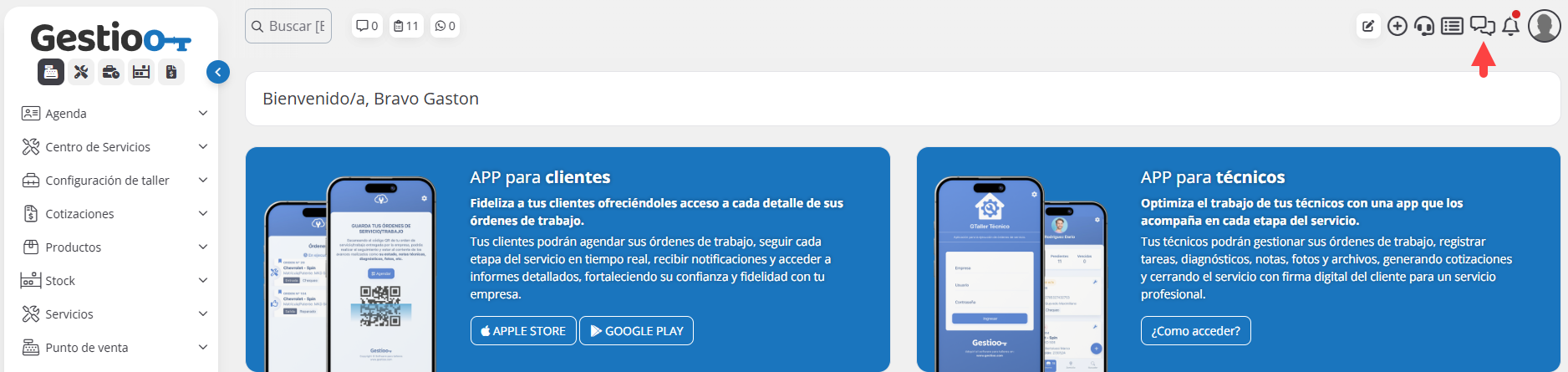 Para acceder al sistema de chat, haz clic en el ícono ubicado en la barra de herramientas principal del sistema.