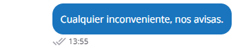 Mensaje leído (las tildes se tornan de color azul cuando el destinatario lo visualiza): Representado por dos tildes de color azul.