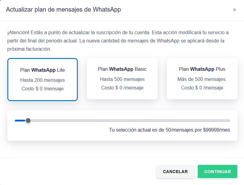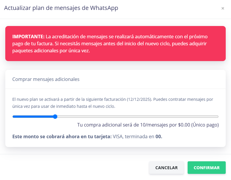 Los créditos no son acumulativos. Al finalizar cada ciclo de facturación, los mensajes se reinician.